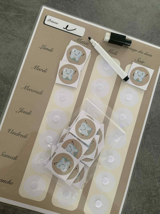 Tableaux du brossage des dents + feutre effaçable